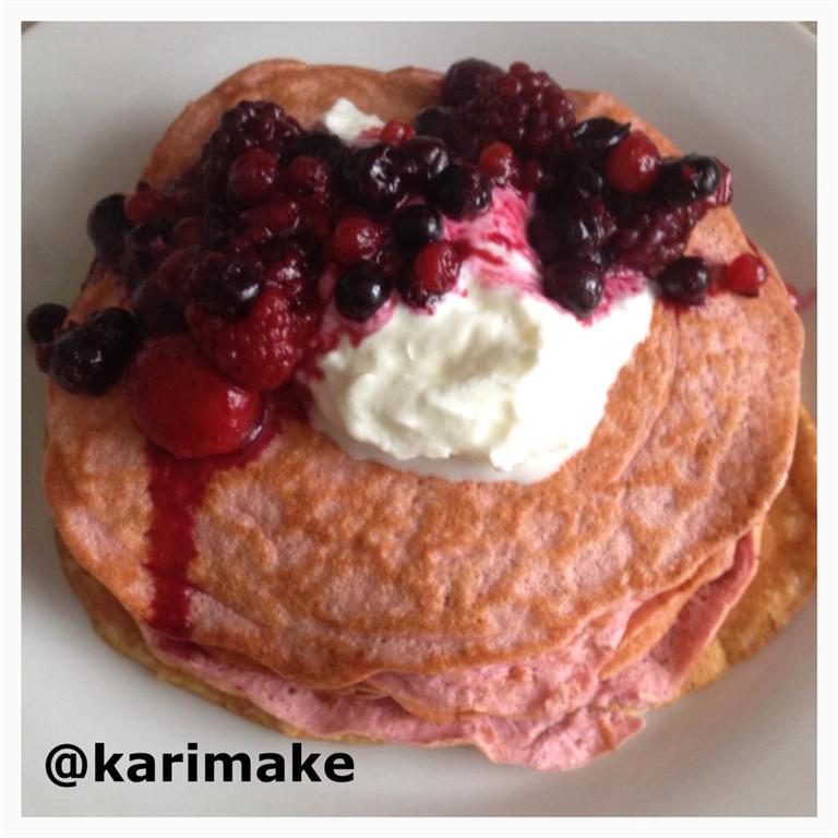 Top pandekagerne med en klat fromage frais og hæld kompotten over