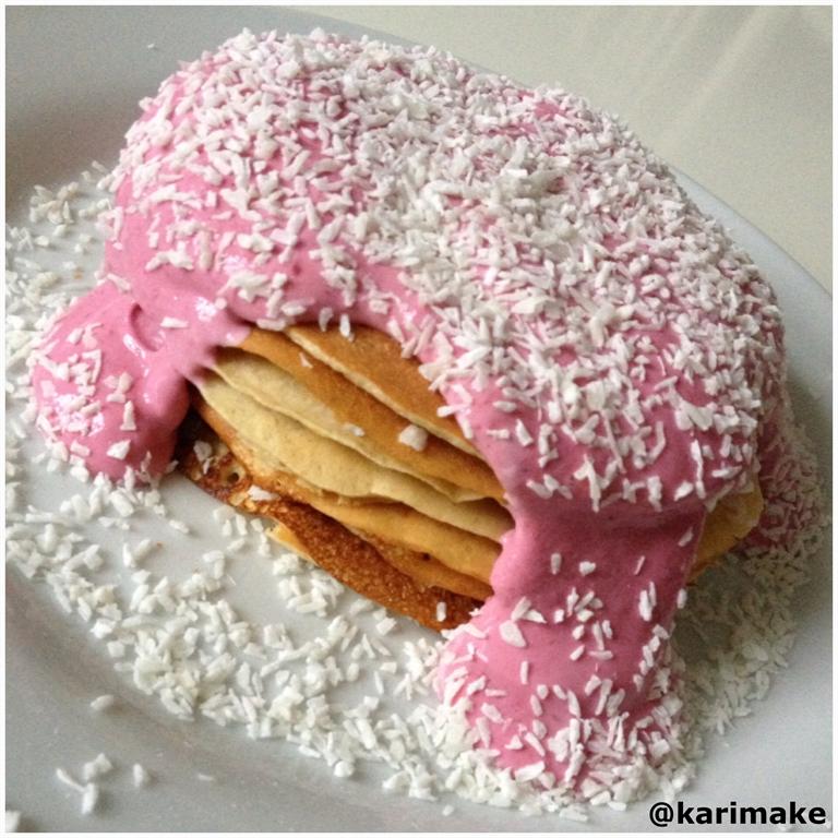 Stabl pandekagerne og hæld cremen udover, top evt med kokosmel.
