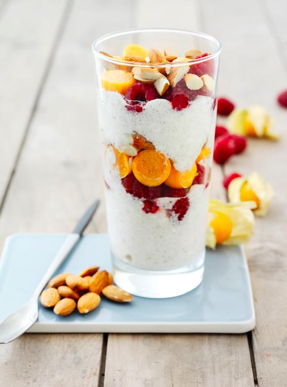 Kom lidt af den luftige vaniljeskyr i et højt glas.